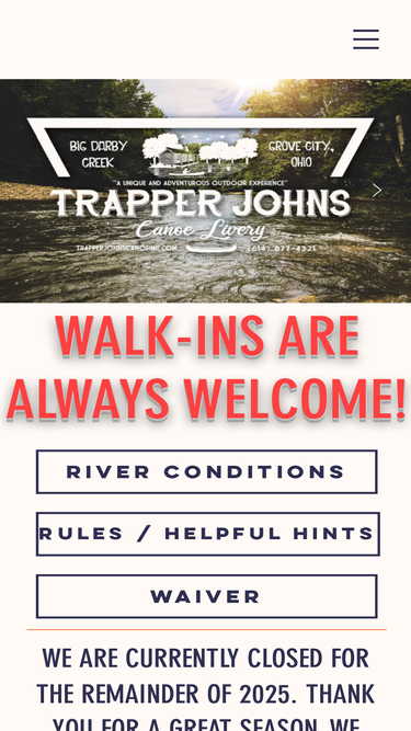 99%Trapper John's Canoe Livery: a unique and adventurous outdoor experience. Located 20 minutes outside Columbus. Canoeing & Kayaking on the Big Darby Creek.