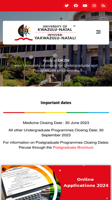 91%UKZN Undergraduate Application procedures for 1st timeSouth African Applicants All first-time South African applicants to UKZN for entry into degree study in the first semester (February) of an academic year (Grade12s as well as undergraduate transfer students from other institutions) must apply via the Central Applications Office (CAO). Visit CAO’s website at www.cao.ac.za International Applicants […]