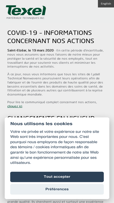 100%Founded in 1967 and a division of Lydall (NYSE: LDL) since July 2016, Texel Technical Materials, Inc. is recognized as one of the major manufacturers of nonwoven materials for technical use in North America.