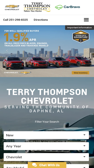 97%visit terry thompson chevrolet for a variety of new and used cars by chevrolet, serving daphne, alabama. we serve mobile al, foley al, fairhope al, robertsdale al and spanish fort al and are ready to assist you!