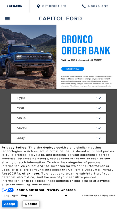 100%capitol ford is a new & used car dealership located in san jose, ca. we sell & service vehicles in santa clara, sunnyvale & fremont, ca.