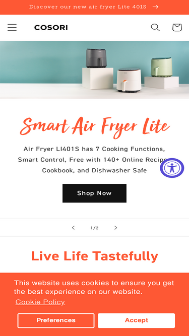 87%𝟏𝟎𝐋 𝐅𝐥𝐞𝐱𝐢𝐛𝐥𝐞 𝐂𝐚𝐩𝐚𝐜𝐢𝐭𝐲: Single & Double zone convertible, the 38 x 22 x 12.5 cm grand basket can be divided into two 5L areas. You can switch the size according to different size of food 𝐏𝐞𝐫𝐟𝐞𝐜𝐭 𝐑𝐞𝐬𝐮𝐥𝐭𝐬 𝐰𝐢𝐭𝐡 𝗗𝘂𝗮𝗹 𝗕𝗹𝗮𝘇𝗲 𝐓𝐞𝐜𝐡𝐧𝐨𝐥𝐨𝐠𝐲: COSORI Dual Blaze Tech uses 4 heating elements to evenly cook both sides, and comes with 2 complimentary baking racks, ensuring crispy, delicious results every time 𝟖 𝐅𝐮𝐧𝐜𝐭𝐢𝐨𝐧𝐬 𝐢𝐧 𝟏: Air Fry, Roast, Bake, Reheat, Dehydrate, Grill, Sync Finish & Cook—all in one appliance, 35-240℃, a versatile alternative to traditional ovens, microwaves and traditional cookers 𝟲𝟲% 𝐄𝐧𝐞𝐫𝐠𝐲 𝐒𝐚𝐯𝐢𝐧𝐠, 𝟯𝟓% 𝐅𝐚𝐬𝐭𝐞𝐫: Save 66% energy cost compared to traditional ovens. With Dual Blaze technology quick family meals up to 35% than traditional ovens 𝐂𝐨𝐨𝐤 𝐘𝐨𝐮𝐫 𝐖𝐚𝐲 𝐭𝐨 𝐇𝐞𝐚𝐥𝐭𝐡: Create every meal with up to 97% less oil for guilt-free crispy goodness; Vegetarian and fitness friendly; Non-toxic and harmless coating 𝐒𝐦𝐚𝐫𝐭 𝐂𝐨𝐨𝐤𝐢𝐧𝐠 & 𝟕𝟎 𝐎𝐧𝐥𝐢𝐧𝐞 𝐑𝐞𝐜𝐢𝐩𝐞𝐬: Access your cooking progress anywhere and remotely control your fryer through free VeSync app. NOTE: Due to regulatory requirements, the product can only support manually turn on. No support for Alexa 𝐖𝐢𝐝𝐞 𝐓𝐞𝐦𝐩𝐞𝐫𝐚𝐭𝐮𝐫𝐞 𝐑𝐚𝐧𝐠𝐞: With a range of 35-240°C, perfectly cook a variety of dishes with precise temperature control 𝐂𝐨𝐦𝐩𝐚𝐜𝐭 𝐃𝐞𝐬𝐢𝐠𝐧: 10L capacity in compact design, 51.7 x 33.3 x 31.2 cm (include handle), well-suited for all kitchen spaces, easily storage 𝐄𝐚𝐬𝐲 𝐂𝐥𝐞𝐚𝐧𝐢𝐧𝐠-𝐔𝐩: Non-stick,dishwasher safe both drawers and accessories.You can spend less time scrubbing and more time savoring your culinary masterpieces 𝐂𝐎𝐒𝐎𝐑𝐈 𝐆𝐮𝐚𝐫𝐚𝐧𝐭𝐞𝐞: EXPERIENCE THE RELIABILITY OF COSORI Benefit from a Two-Year Full Warranty and Lifetime Support. Our dedication to quality and customer service ensures you receive the best in safety and performance. Contact us anytime with any product-related questions