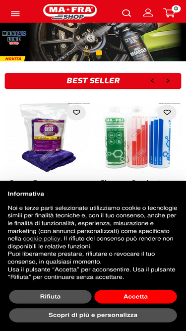 97%Mafra Shop è il negozio online ufficiale Mafra, e-commerce per la vendita di prodotti per la pulizia e cura della tua auto, moto, camper e pet.
