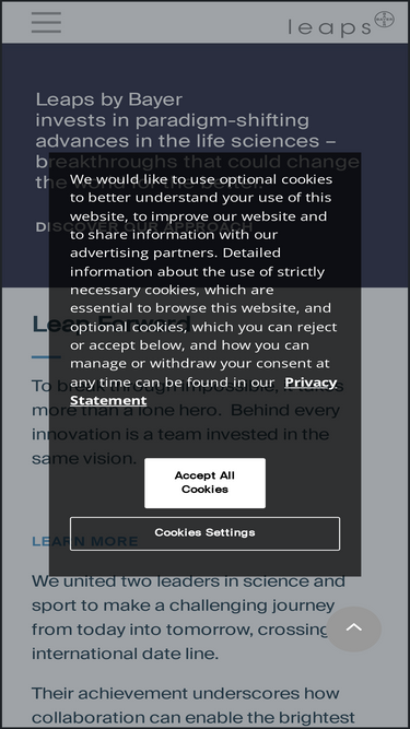 85%Leaps by Bayer invests in teams pursuing fundamental breakthroughs in life science, targeting 10 huge challenges or "leaps" facing humanity.