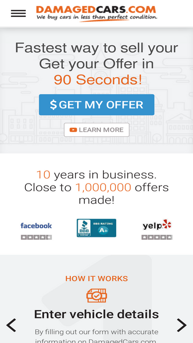 91%sell your wrecked car with body damage or mechanical issues. get a cash offer and see how much your car’s worth is. we buy any car and guarantee fast payment and free nationwide towing.