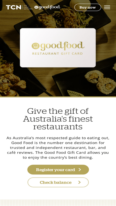80%As Australia’s most respected guide to eating out, Good Food is the number one destination for trusted and independent restaurant, bar and café reviews. The Good Food Gift Card allows you to enjoy the country’s best dining.