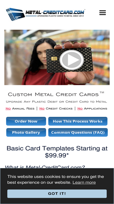 100%Terms of Service Terms of Service: Last Updated: 2025-01-10 Welcome to Metal Card Studio! By using our services, you agree to the following terms and conditions. Please read them carefully before placing an order. 1. Service Description Metal Card Studio Inc. specializes in converting plastic credit, debit, or other payment cards into metal cards. This […]