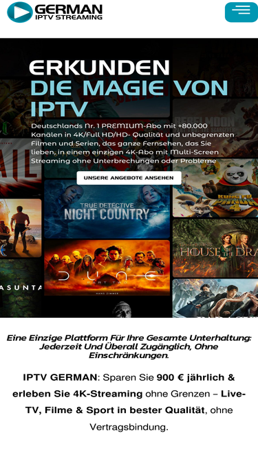 71%Entdecken Sie die Magie von GERMAN IPTV. Jetzt IPTV kaufen und deutsche Live-Sender, Serien und Filme ohne Unterbrechung mit 1 kostenlosen Bildschirm genießen.