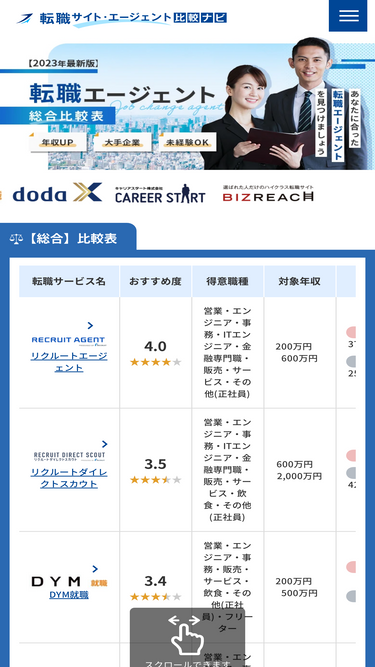 90%ホワイト企業に転職したい人は必見の転職サイト・転職エージェントを徹底比較。年収・求人数・サービス登録者数など、気になる情報を一目で比較できる国内最大級の転職サイト・転職エージェント比較サービス。転職で失敗したくない人は登録必須の転職サービスをご紹介。