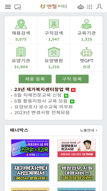 75%요양보호사 및 사회복지사, 요양기관 종사자 전문 구인구직 사이트, 전국 재가방문요양 주간보호 요양원 요양병원 검색 및 교육원 찾기, 가족요양 및 창업 등