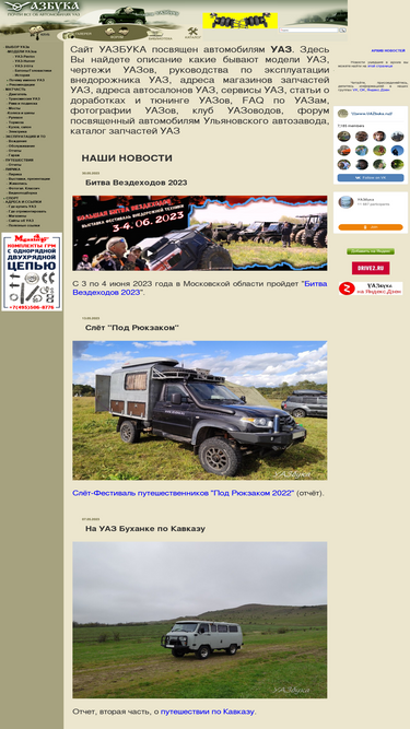 72%уазбука. почти все об автомобилях уаз. описание моделей уаз, технические характеристики уаз, чертежи уаз, руководства по эксплуатации и ремонту. описание доработок, тюнинг уазов. список магазинов и сервисов для уаз. клуб уазоводов. форум уазоводов. фотогаллерея