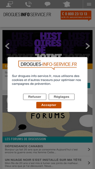 85%si vous êtes concerné(e) directement ou indirectement par une consommation de drogues, n'hésitez pas à appeler drogues info service au 0 800 23 13 13, de 8h à 2h, 7j/7. appel anonyme et gratuit.