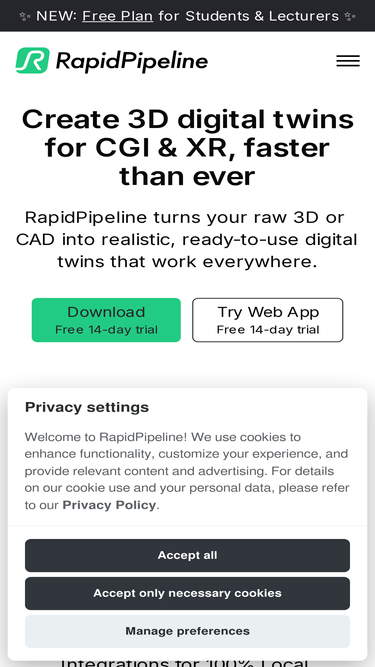 87%rapidpipeline enables companies to use 100x their productivity working with digital products, and to use 3d digital product at scale.