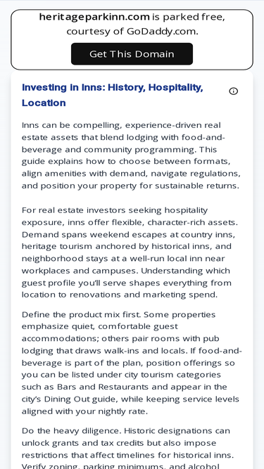 100%this website is for sale! heritageparkinn.com is your first and best source for all of the information you’re looking for. from general topics to more of what you would expect to find here, heritageparkinn.com has it all. we hope you find what you are searching for!
