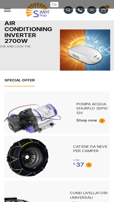 86%SimatShop vendita online di accessori per camper, accessori fotovoltaico, illuminazione led 12V 24V, lampeggianti led, fanaleria led, pompe acqua 12V