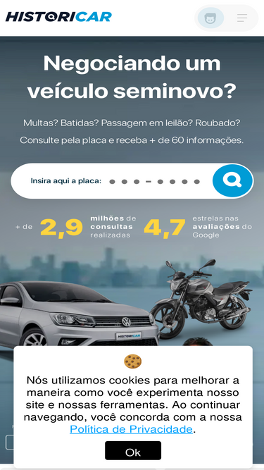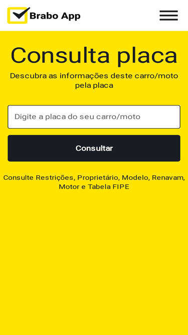 91%Consulta pela placa para descobrir as informaçoes do veículo! Consulta pelo Proprietário, Consulta pelo Renavam, Consulta Roubo e Furto, Consulta por Multas, Consulta por IPVA, Consulta por Licenciamento, Consulta pelo Chassi, Consulta pelo Motor, Consulta pelo Município, Consulta por Restriçoes, Consulta por Roubo/Furto e Consulta pela Tabela FIPE, Consulta de Gravame, Consulta de Recall, Consulta Renajud, Consulta de Leilão, Consulta Renainf