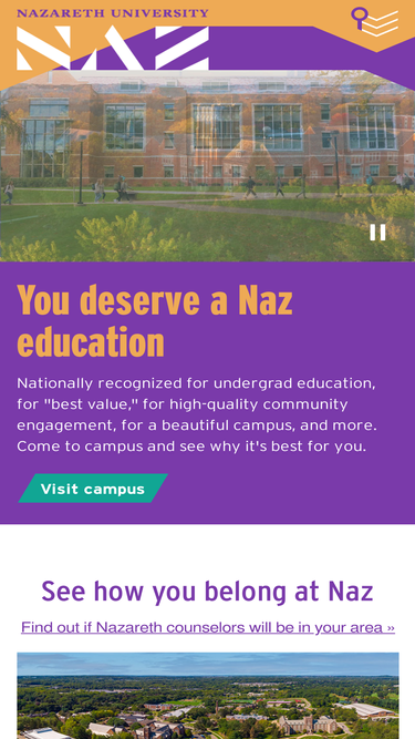 74%nazareth university offers over 60 academic programs in the liberal arts and sciences and professional programs in health and human services, education and management.