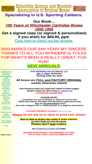 84%dedicated to the collector of ammunition for old or antique guns or those seeking obsolete ammunition. antique ammuniton in their original boxes, and obsolete ammunition for use. this site specializes in sporting ammuntion, no military or foreign types, unless otherwise listed.