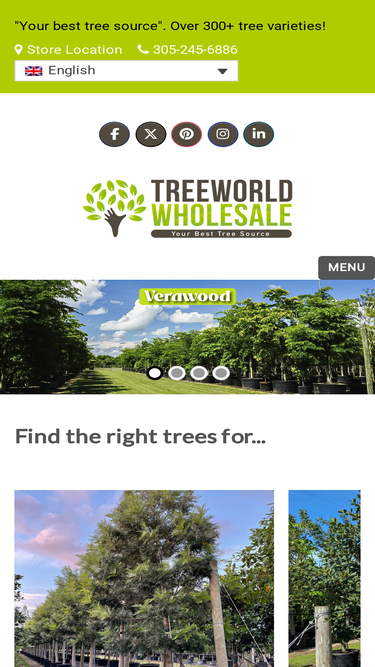 82%Treeworld Wholesale is the best tree source in South Florida with over 300 + varieties of trees! At TreeWorld you can find the best trees, shrubs and palms to suit your landscaping needs. Treeworld Wholesale is located in Homestead, Florida