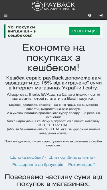 100%Економте на покупках в магазинах до 15%. Заробляйте на своїх покупках разом з кешбек сервісом payBack
