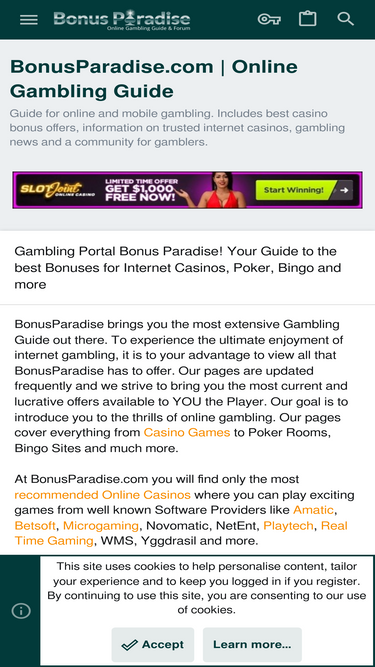 100%Find everything you need to know about online casinos, poker, bingo and more at Bonus Paradise. Join our friendly gambling community!