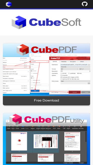 72%CubePDF は無料の PDF 変換・作成フリーソフトです。 プリンターで印刷するのと同じ操作で、印刷可能なあらゆるファイルを PDF, PNG, JPEG 等のファイルに変換することができます。
