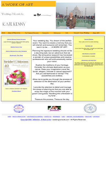100%a work of art is a wedding consultant business. located in the southern california area. we have many services to help the bride-to-be with anything that they desire. specializing in vineyard weddings in tuscany and california.
