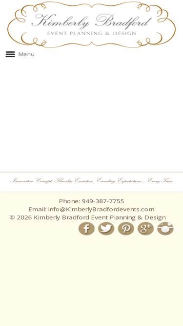 100%kimberly bradford events provides complete wedding coordinating and planning of all aspects of the event. serving greater los angeles, orange county, san diego, santa barbara, san fernando valley and out of the area locations.