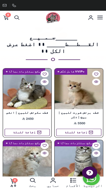 أكبر متجر متخصص لبيع القطط و مستلزماتها و تقديم خدمات العناية و التطعيم اونلاين في السعودية من و الى باب بيتك بأفضل الاسعار مع ضمان الاسترجاع بكل أمان و سهولة بجميع طرق الدفع الآمنة بالإضافة الى إمكانية التقسيط عبر تابي و تمارا
