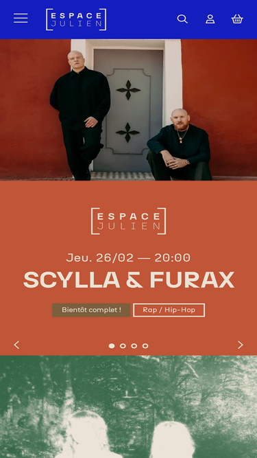 80%Une question ? Besoin d'infos ? Contactez l’Espace Julien via notre formulaire. Notre équipe est à votre écoute pour toute demande sur la billetterie, l’accessibilité ou les collaborations.