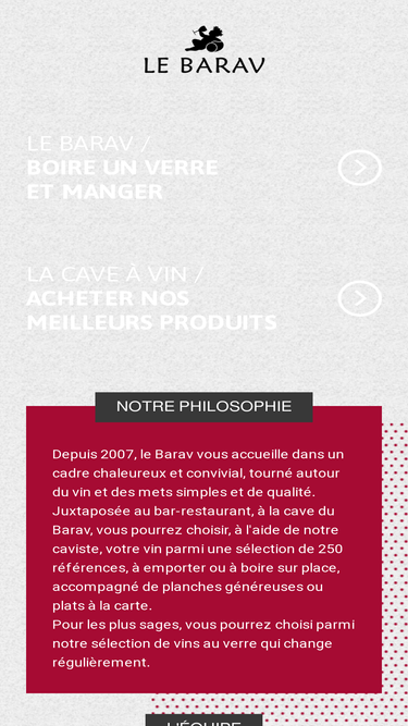 99%Le Barav vous accueille dans un cadre chaleureux et convivial, tourné autour du vin et des mets simples et de qualité.