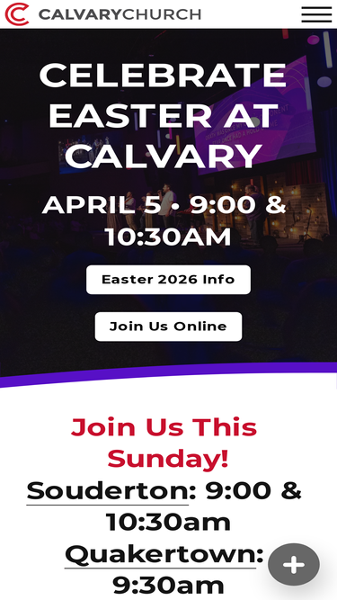 74%Calvary Church is a Christian church in Souderton and Quakertown, PA. Join us Sundays for meaningful worship, great kids programs, and a welcoming community.