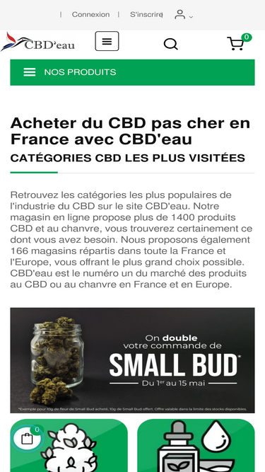 85%Découvrez CBD'eau : le meilleur shop CBD en France. Huiles, fleurs, résines, cosmétiques CBD pas chers et certifiés.