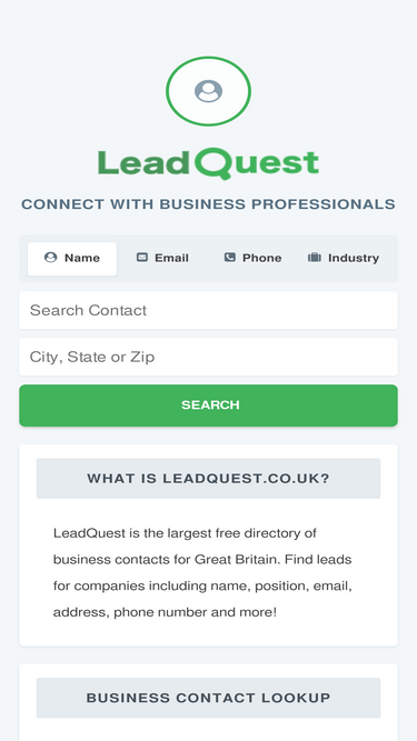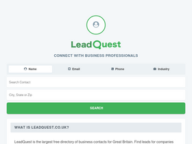 LeadQuest is the largest free directory of business contacts for Great Britain. Find leads for companies including name, position, email, address, phone number and more.