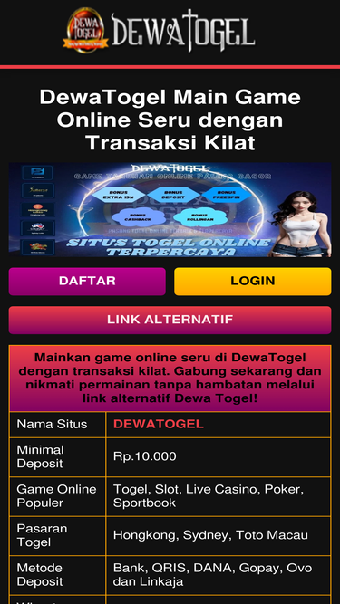 100%Mainkan game online seru di DewaTogel dengan transaksi kilat. Gabung sekarang dan nikmati permainan tanpa hambatan melalui link alternatif Dewa Togel!