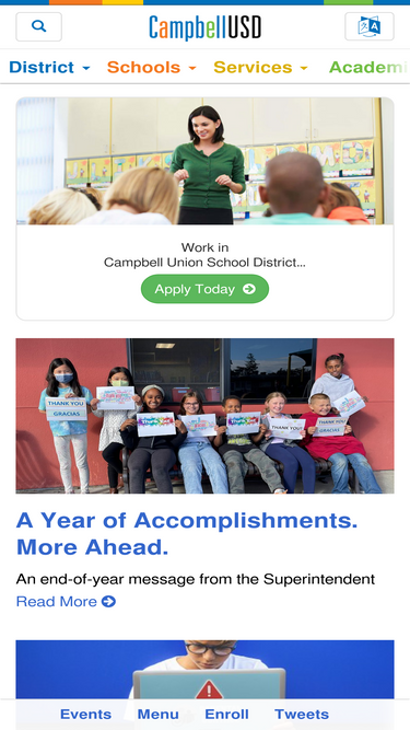89%Campbell Union School District provides education beyond the expected for preschool to 8th grade students in Campbell, Los Gatos, San Jose, Santa Clara, and Saratoga.