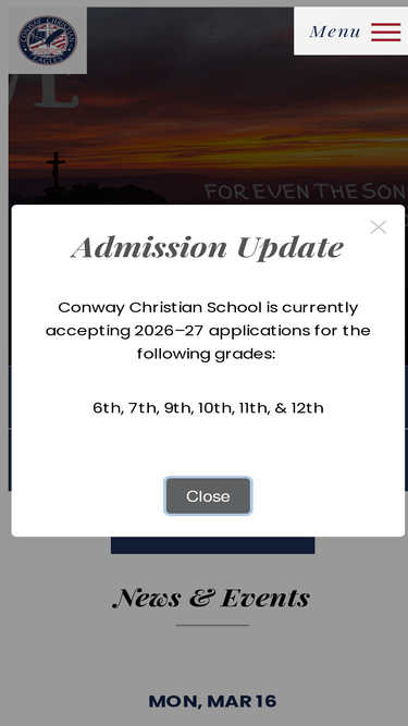 100%October 30, 2025Dear Conway Christian Families,As we approach this upcoming Veteran’s Day holiday, we thank God for each military person who has served our country.A special chapel service honoring our veterans will be held at 8:30am on Tuesday, November 11th in the school auditorium. If you have s...