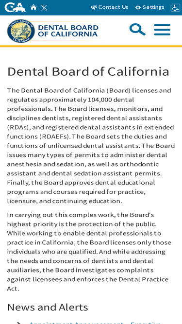 89%a website for the state of california, department of consumer affairs, dental board of california