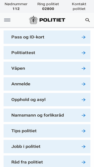 100%på politiet.no finner du tjenester, åpningstider, kontakt og informasjon.