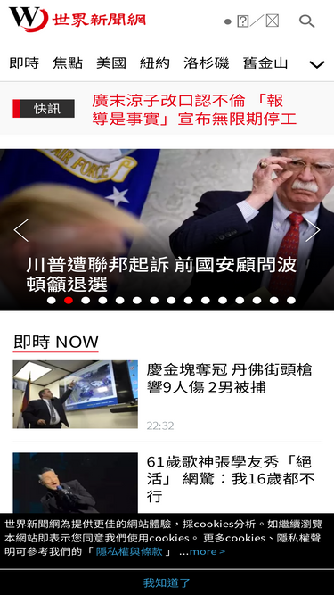 100%世界新聞網提供全球華人關心的即時新聞;除美、中、台與港澳等地的政經、社會、生活、理財等新聞與深度報導外,更關切國際現勢與紐約、洛杉磯、舊金山等美國主要城市的社區動態。