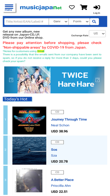 Online shop musicjapanet can capture any titles of Japan CD, LP, DVD, up to new releases, which are brand new made in Japan ship to worldwide quickly.