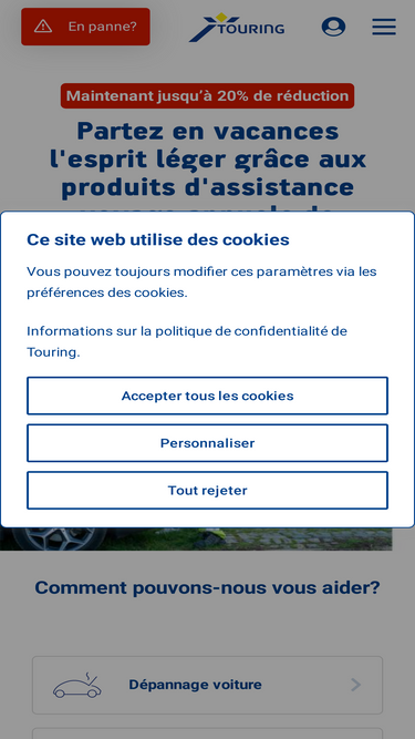 80%En Belgique ou à l’étranger, soyez couverts 7j/7, 24h/24, lors de tous vos déplacements avec Touring.