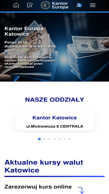 81%Sprawdź aktualne kursy walut w Katowicach. Kantor Europa - bezpieczna wymiana walut, obsługa stacjonarna i kantor internetowy.