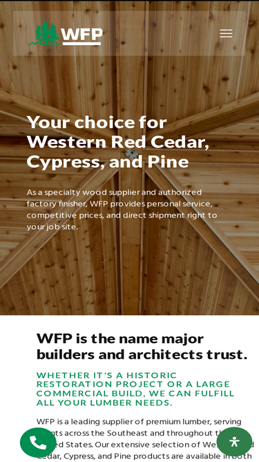 96%Operating out of North Florida for over 50 years, WFP distributes Western Red Cedar, Southern Yellow Pine, Cypress, and more to building professionals.