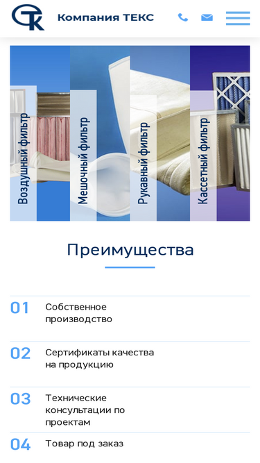 88%производство и продажа воздушных, жидкостных и рукавных промышленных фильтров для очистки воды и воздуха. на сайте компании текс вы сможете заказать воздухоочистные фильтры и комплектующие материалы к ним от производителя.