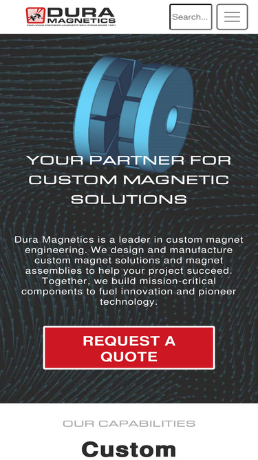 65%Request a Quote At Dura Magnetics, you get the best magnet and magnetic assembly design and engineering assistance in the marketplace. TO REQUEST A QUOTE, PLEASE COMPLETE AND SUBMIT THE FORM BELOW: Full Name:* Email:* Phone: Company:* Government Compliance Requirements:DFARITARDFAR & ITAROther Material Type: *AlnicoNeodymiumSamarium CobaltCeramicOther Magnet Use Application Estimated Annual Usage (EAU) Current RFQ
