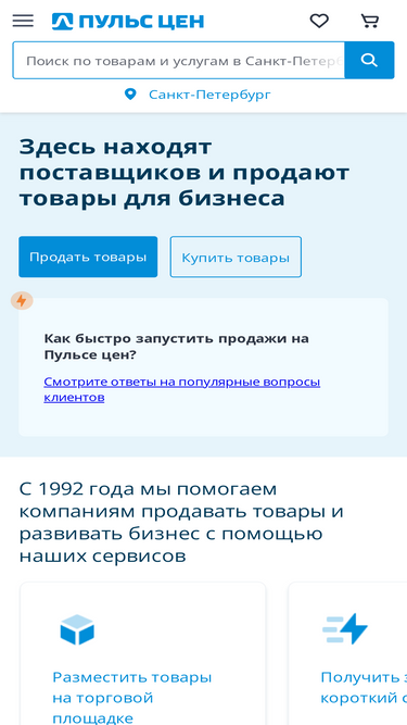 79%портал пульс цен - маркетплейс для профессионалов b2b в санкт-петербурге. размещайте прайс, оставляйте и работайте с готовыми заявками на закупку, оценивайте спрос, участвуйте в каталоге компаний. создайте свой сайт или интернет-магазин. контакты фирм и актуальные цены в разделах: материалы, оборудование, строительство и ремонт, транспорт, промышленные товары.