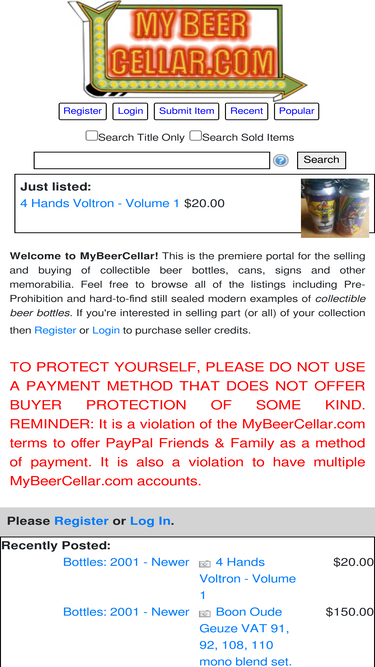welcome to mybeercellar! this is the premier portal for the selling and buying of collectible beer bottles, cans, signs and other memorabilia.