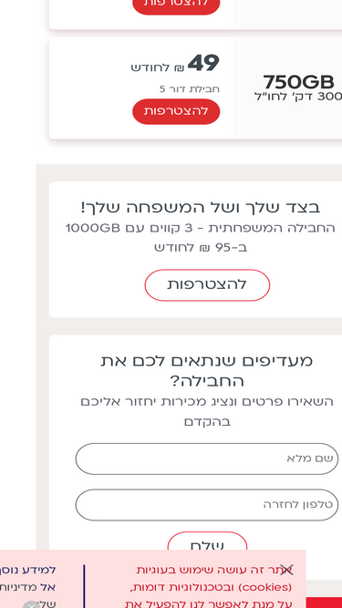 82%חבילות סלולר משפחתיות, חבילות סלולר לחיילים ואפילו שיחות לחול במחירים הכי משתלמים. מגוון חבילות סלולר ללא תחרות במחיר קבוע לכל החיים. לחץ עכשיו בחר את החבילה המתאימה לך ותתחיל לשלם פחות!