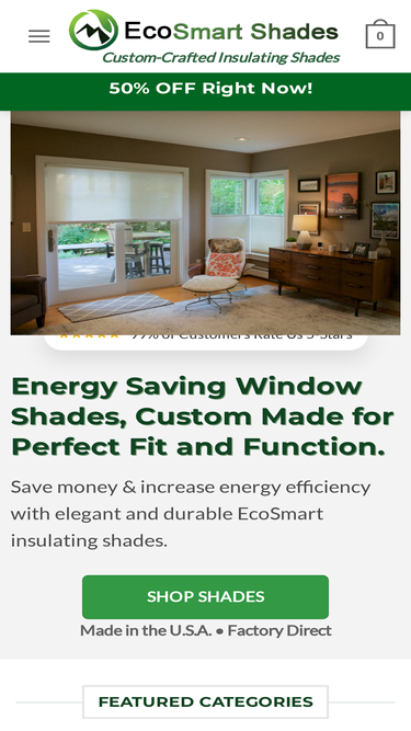 92%EcoSmart Shades offers premium insulating cellular shades and roller shades, custom built in our Vermont, USA facility, backed by an industry-leading warranty.